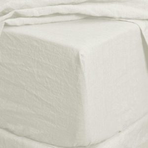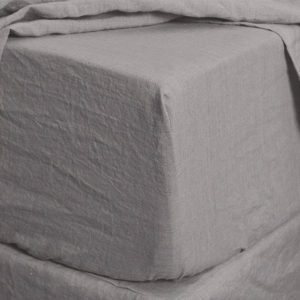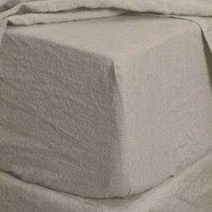 Luxurious linen and cotton blend sheet set in sand, stone and white gives you the ultimate restful ritz!