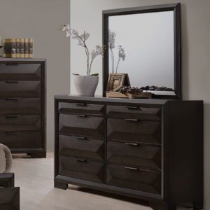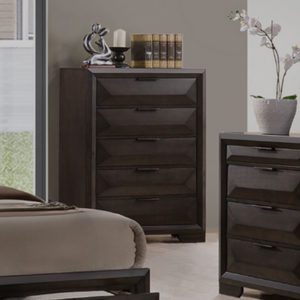 Offering everyting you could as fo in bedroom furniture, this rich espresso bedroom set is comfortabe, functional and sleey stylish. This group has plenty of storage options in the headboard and two pull-out drawers.