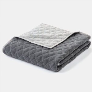 Details Dark grey quilted blanket Reversible soft grey 70% cotton – 30% polyester Machine washable and dryable